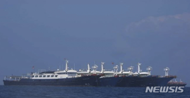 [마닐라=AP/뉴시스] 21일 필리핀 해상경비대가 제공한 사진으로, 220여척의 중국 '민병대' 선박이 남중국해 영유권 분쟁 수역내에 정박해 있는 모습이 담겨있다. 필리핀 해상경비대는 이들 중국 선박이 지난 7일부터 배타적경제수역(EEZ)내 정박해 있다고 주장했다. 2021.03.21