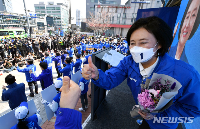 [4·7재보선]박영선 서울시장 후보, '엄지척'