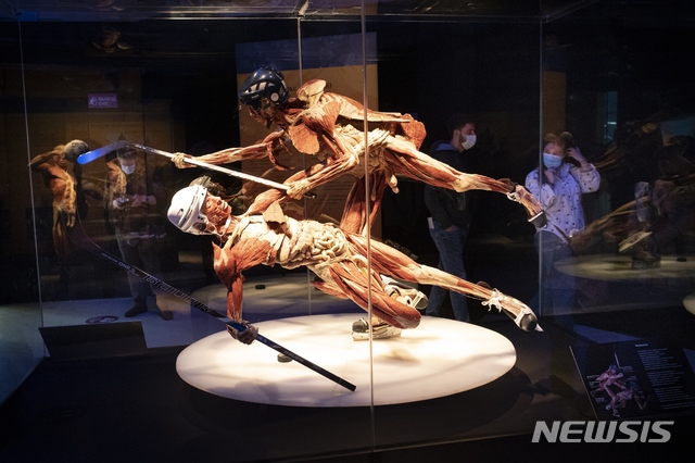 [모스크바=AP/뉴시스]1일(현지시간) 러시아 모스크바의 러시아 박람회장에서 방문객들이 인체의 신비 전시를 관람하고 있다. 러시아 일부 의원과 보수주의자들은 기증된 인체와 장기를 화학적으로 처리, 보존해 전시하는 것이 종교인들의 감정을 상하게 할 수 있다며 반발하고 나섰고 러시아 당국은 이 전시의 적법성 여부를 따지기 위한 조사에 착수했다고 전했다. 2021.04.02.