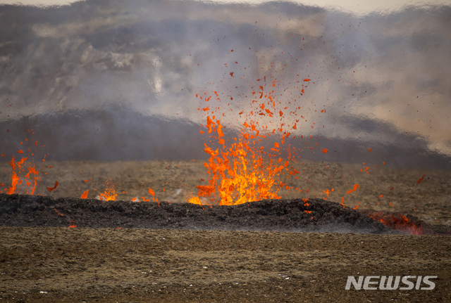 아이슬란드 화산, 새로운 분화구서 용암 분출