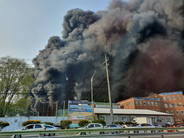 [서울=뉴시스]조수정 기자 = 10일 오후 4시 30분께 경기 남양주시 다산동 도농역 인근 주상복합건물에서 화재가 발생, 경기소방, 서울소방 등이 진화작업을 하고 있다. (사진=독자 제공) 2021.04.10. [email protected] *재판매 및 DB 금지