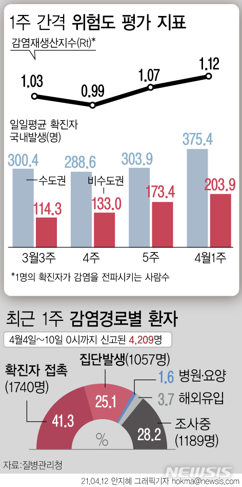 [그래픽] 감염재생산지수 1.12…감염경로 불명 28.5%