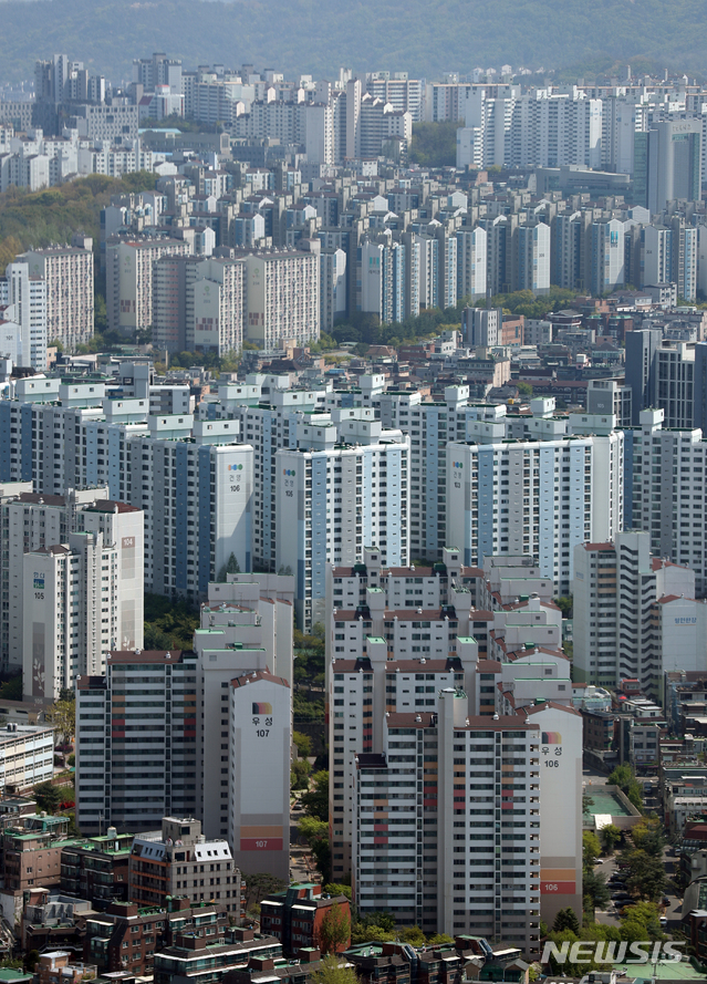 [서울=뉴시스]이윤청 기자 = 오세훈 서울시장 취임 이후 서울 아파트값이 다시 상승폭을 키우고 있는 18일 서울 여의도 63빌딩 전망대에서 서울 시내 아파트 단지들이 보이고 있다. 2021.04.18. [email protected]