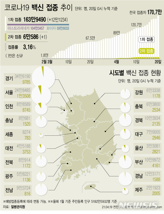 [그래픽] 코로나 백신 접종 12만명 늘어 164만명