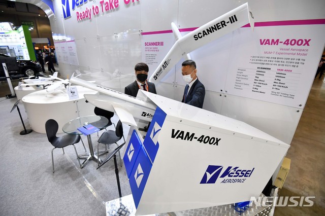 [부산=뉴시스]하경민 기자 = '2021 드론쇼 코리아'가 개막한 29일 부산 벡스코 제1전시장 베셀에어로스페이스 부스를 찾은 관람객들이 개발 중인 발사형 무인기 시스템을 둘러보고 있다. 오는 5월 1일까지 열리는 이번 행사에는 드론 관련 업체 134곳이 참가하는 전시회를 비롯해 4개국 51명이 연사 및 좌장이 참여하는 콘퍼런스, 다양한 체험 이벤트 등이 마련된다. 2021.04.29. [email protected]