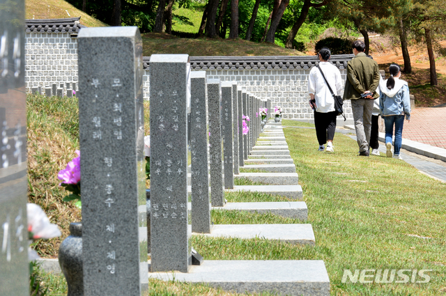 [광주=뉴시스] 김혜인 기자 = 5·18민주화운동 41주년을 약 보름 앞 둔 2일 오전 광주 북구 운정동 국립5·18민주묘지에 참배객 발길이 이어지고 있다. [email protected]
