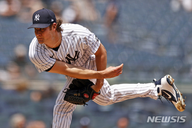 [브롱스=AP/뉴시스] 뉴욕 양키스 에이스 게릿 콜(31)은 23일(한국시간) 미국 뉴욕주 브롱스의 양키스타디움에서 열린 시카고 화이트삭스와의 홈경기에 선발등판, 7이닝 4피안타 무실점 호투로 팀의 7-0 승리를 이끌었다.