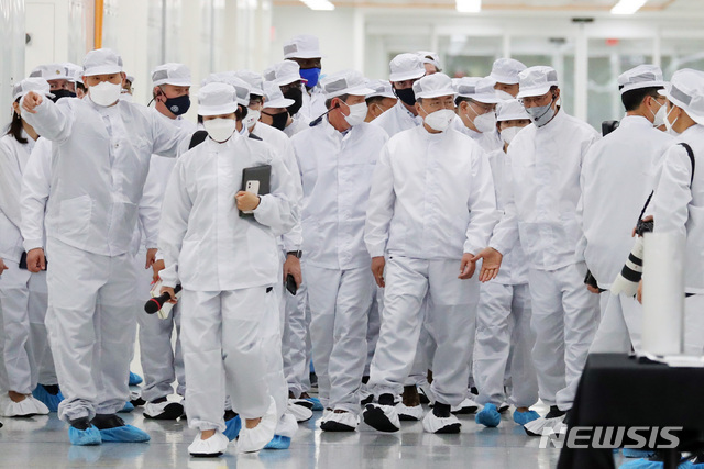 [애틀랜타=뉴시스]추상철 기자 = 문재인 대통령이 22일 오후(현지시간) 미국 애틀랜타 SK이노베이션 조지아공장에서 전기차 배터리 1공장을 시찰하고 있다. 2021.05.23. [email protected]