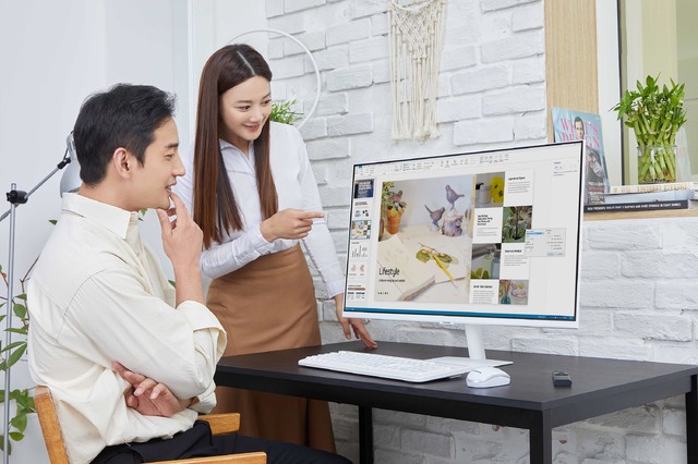 [서울=뉴시스]삼성전자가 스마트 모니터 신제품을 한국 포함 전 세계 주요 시장에 24일 출시한다고 밝혔다. 삼성 스마트 모니터는 타이젠 OS 기반의 스마트 허브를 탑재해 PC 연결 없이도 업무와 학습뿐만 아니라 다양한 콘텐츠 서비스를 즐길 수 있는 신개념 모니터이다. 이번에 출시하는 신제품은 기존 라인업에서 ‘M7(43형, UHD)’ 대형 화면 제품이 추가됐다. 모델이 삼성 스마트 모니터 M5 32형 FHD 화이트 에디션 신제품을 소개하고 있다. (사진=삼성전자 제공) 2021.05.24. [email protected] *재판매 및 DB 금지