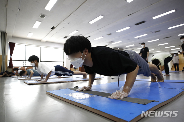 팔굽혀펴기 하는 의경 응시생들