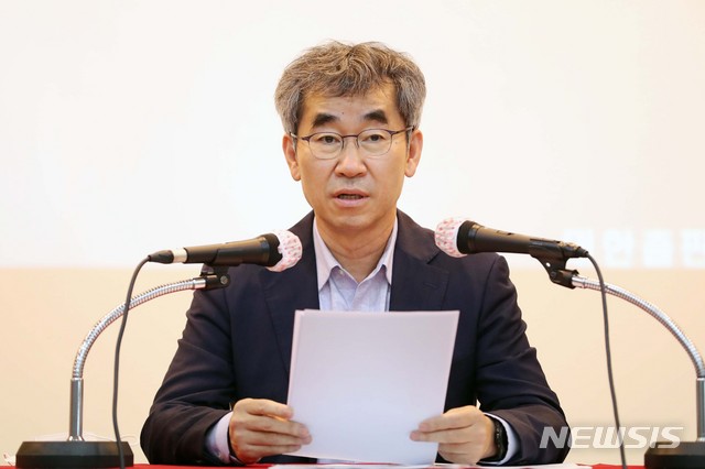 [서울=뉴시스]박진희 기자 = 윤철호 대한출판문화협회 회장이 30일 서울 종로구 대한출판문화협회에서 열린 '출판현안 관련 기자간담회'에 참석하여 발언을 하고 있다. 2021.06.30. [email protected]