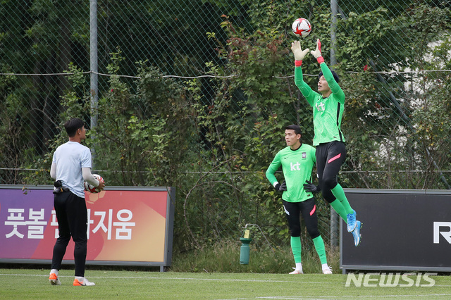 [파주=뉴시스]김병문 기자 = 송범근이 2일 오후 경기 파주시 축구 국가대표 트레이닝센터(NFC)에서 올림픽축구대표팀 소집 훈련하고 있다. 올림픽축구대표팀은 13일 아르헨티나, 16일 프랑스와 평가전을 치른 후 17일 일본 도쿄로 출국 예정이다. 2021.07.02. [email protected]