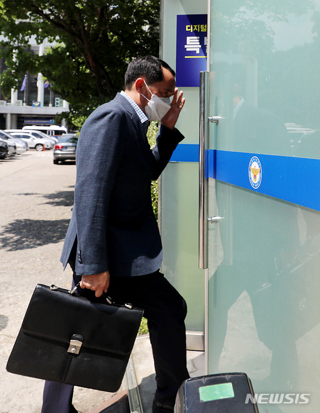 [서울=뉴시스] 추상철 기자 = 최원일 전 천안함 함장이 15일 오후 서울 서초경찰서에서 고소인 조사를 받기 위해 조사실로 들어서고 있다. 2021.07.15. [email protected]