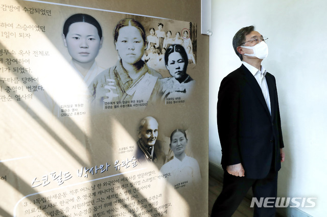 [서울=뉴시스] 최동준 기자 = 국민의힘 대권주자인 최재형 전 감사원장이 15일 서울 서대문형무소를 방문해 유관순 열사가 수감되었던 여옥사 8호실을 둘러보고 있다. 2021.08.15. [email protected]