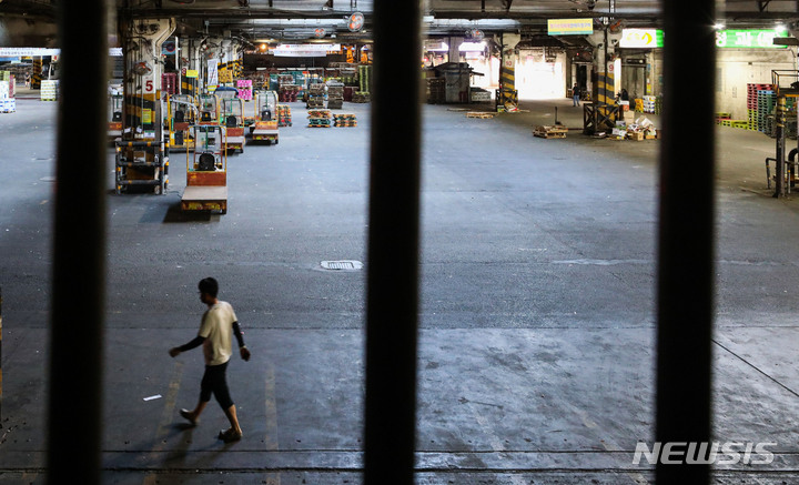 [서울=뉴시스] 권창회 기자 = 가락시장 관련 집단감염 확산세가 지속되고 있는 23일 오전 서울 송파구 가락시장이 한산한 모습을 보이고 있다. 2021.09.23. [email protected]