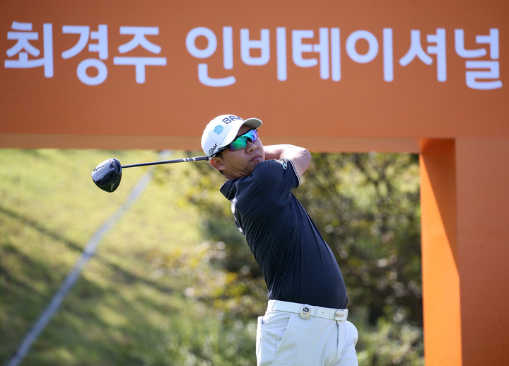 [서울=뉴시스] 추상철 기자 = 2일 경기 여주시 페럼클럽에서 열린 '현대해상 최경주 인비테이셔널 3라운드' 경기. 권성열이 티샷을 하고 있다. (사진= KPGA 제공) 2021.10.02. [email protected] *재판매 및 DB 금지