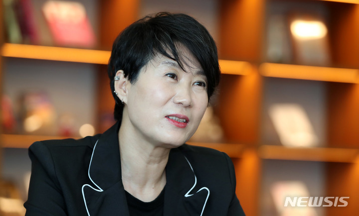 [서울=뉴시스] 추상철 기자 = '흐르는 눈물은 닦지 마라'를 출간한 조연희 작가가 6일 오후 서울 마포구 상암 누리꿈스퀘어 샘앤파커스에서 뉴시스와 인터뷰를 하고 있다. 2021.10.09. [email protected]