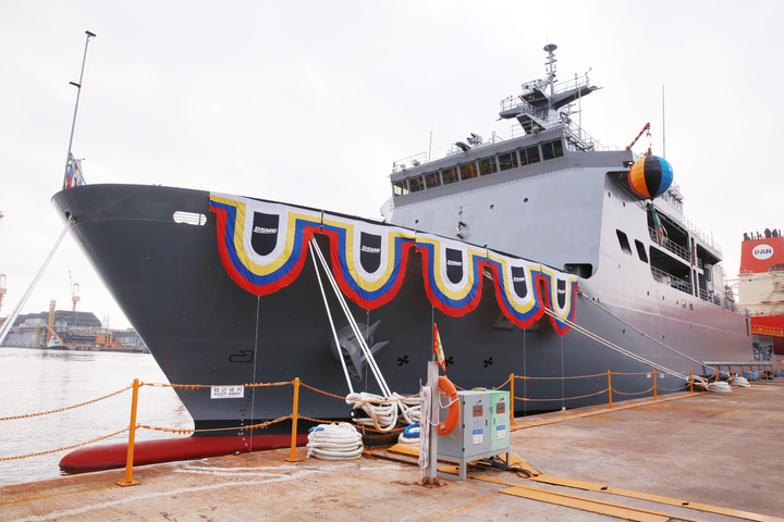 [서울=뉴시스] 박미소 기자= 강화도함이 7일 경남 거제시 대우조선해양 옥포조선소에서 열리는 차기 잠수함구조함 강화도함 진수식을 앞두고 정박해 있다. (사진=해군 제공) 2021.10.07. [email protected] *재판매 및 DB 금지