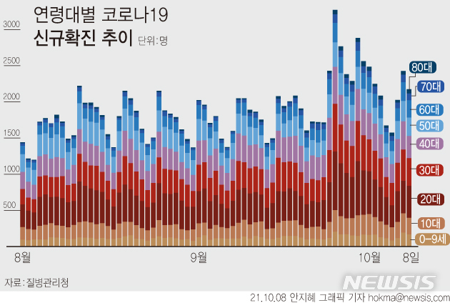 [그래픽] 연령대별 코로나19 신규 확진 추이