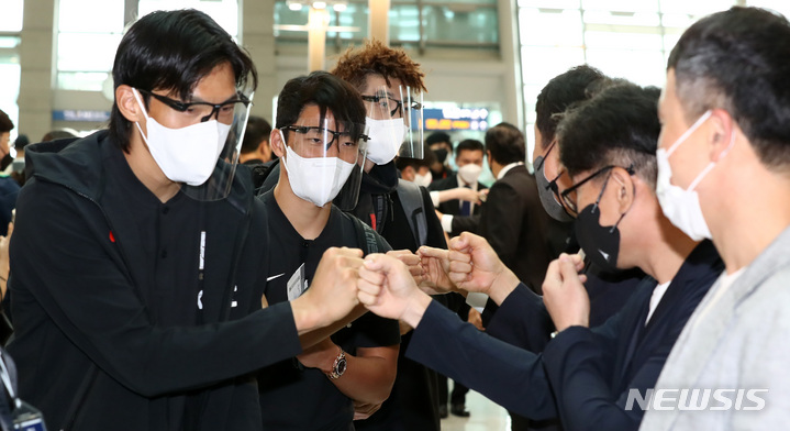 [인천공항=뉴시스] 이영환 기자 = 축구대표팀 황희찬 등이 9일 오후 인천공항 제1여객터미널에서 전세기편을 이용해 이란으로 출국하고 있다. 대표팀은 한국시간으로 12일 오후 10시30분 이란 테헤란의 아자디스타디움에서 2022 카타르 월드컵 아시아 지역 최종 예선 A조 4차전 이란과 경기를 치른다. 2021.10.09. [email protected]