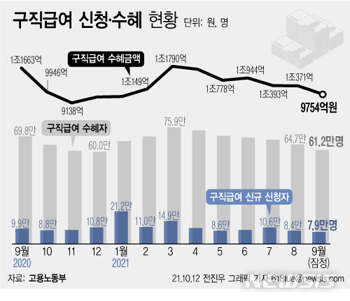 [그래픽] 지난달 실업급여 9754억원…신규 신청자 7.9만명