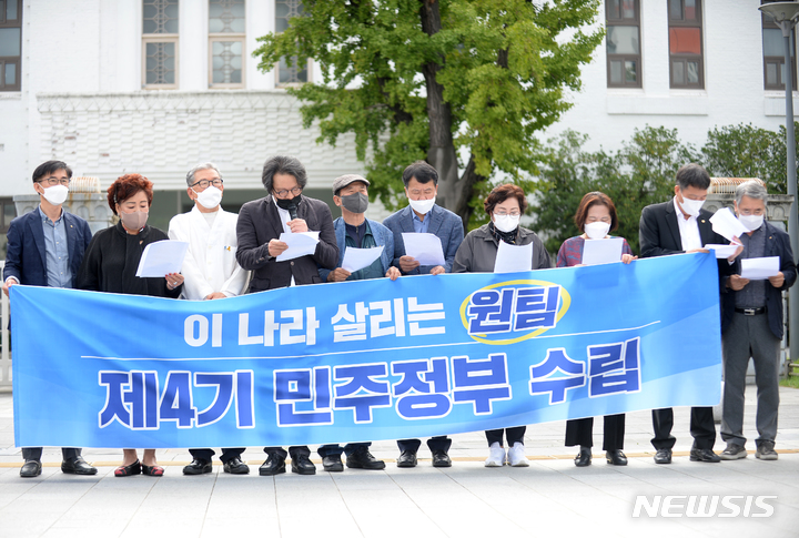 [광주=뉴시스] 김혜인 기자 = 이명자 오월어머니집 관장 등 광주 각 계 인사들이 13일 오전 광주 동구 금남로 5·18민주광장에서 이낙연 후보가 당 경선결과에 이의제기를 한 것과 관련해 성명을 내고 '민주당 단결' 을 촉구하고 나섰다. [email protected]