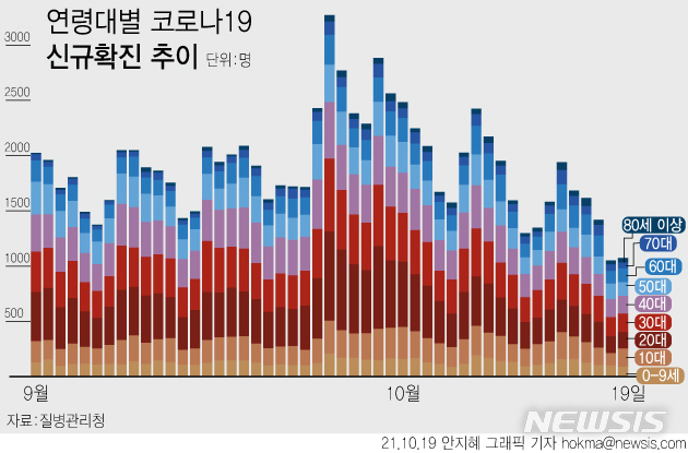 [그래픽] 연령대별 코로나19 신규 확진 추이