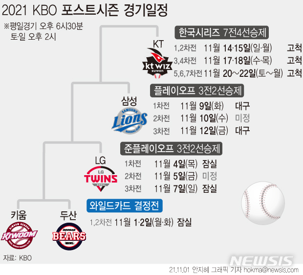 [그래픽] 2021 KBO 포스트시즌 경기 일정