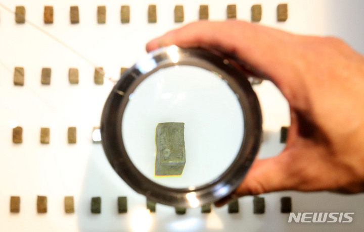 [서울=뉴시스] 박미소 기자 = 2일 오전 서울 종로구 국립고궁박물관 기획전시실에서 열린 인사동 출토유물 공개전에서 조선 전기 금속활자가 전시돼 있다. 지난 6월 서울 인사동에서 발굴한 유물 1,755점이 오는 3일부터 시민에 공개된다. 2021.11.02. [email protected]