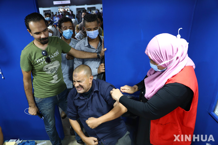 지하철역에서 백신 맞는 이집트 남성 '오만상'