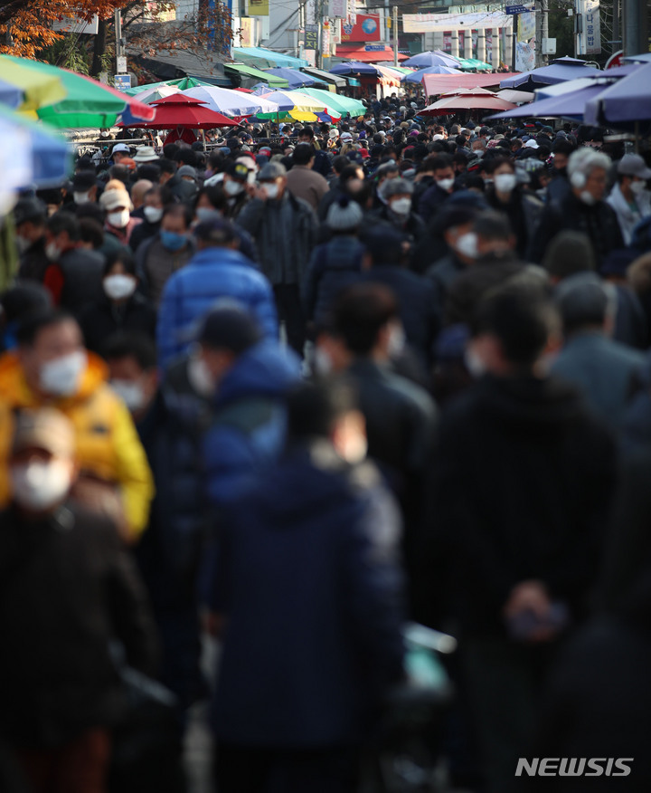 [서울=뉴시스] 박미소 기자 = 정부의 코로나19 대응 특별방역점검회의를 하루 앞둔 28일 오후 서울 종로구 동묘시장에 시민들이 북적이고 있다. 2021.11.28. [email protected]