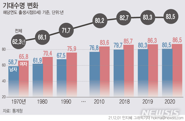 [그래픽] 기대수명 83.5세…10년 새 3.2년 늘어