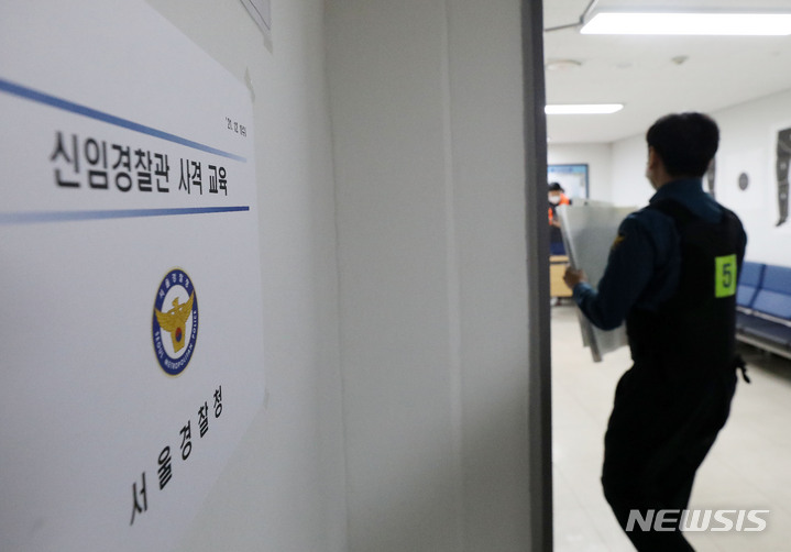 [서울=뉴시스] 백동현 기자 = 서울경찰청이 신임 경찰 현장대응력 강화 특별 교육을 실시한 가운데 1일 오전 서울 강남경찰서 실내사격장에서 신임 경찰관들이 사격훈련을 위해 이동하고 있다. 2021.12.01. [email protected]