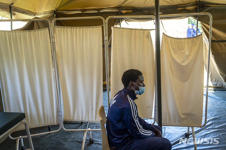 [롤리=AP/뉴시스] 1일(현지시간) 남아프리카공화국 요하네스버그 인근 롤리의 한 의원에 백신을 접종하러 온 한 남성이 추가 점검을 위해 격리돼 있다. 오미크론 변이가 전 세계로 확산하는 가운데 남아공 의료진은 오미크론 변이 확진자들이 속단하긴 이르지만 지금까지 대부분 가벼운 증상만을 보인다고 보고했다. 2021.12.02.