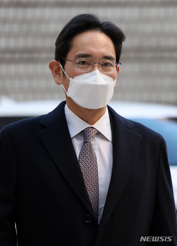 [서울=뉴시스] 홍효식 기자 = 이재용 삼성전자 부회장이 2일 오전 서울 서초구 서울중앙지법에서 열린 삼성 부당합병 의혹 24차 공판에 출석하고 있다. 2021.12.02. [email protected]