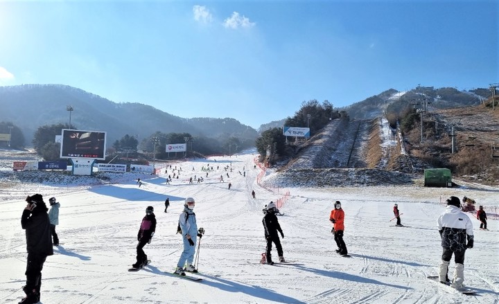 [횡성=뉴시스] 이덕화 기자 = 3일 강원 횡성군 소재 웰리힐리파크 스키장이 개장한 가운데 스키·보더 마니아들이 하얀 눈을 즐기며 겨울 스포츠를 만끽하고 있다. (사진=웰리힐리파크 제공) 2021.12.03. [email protected]