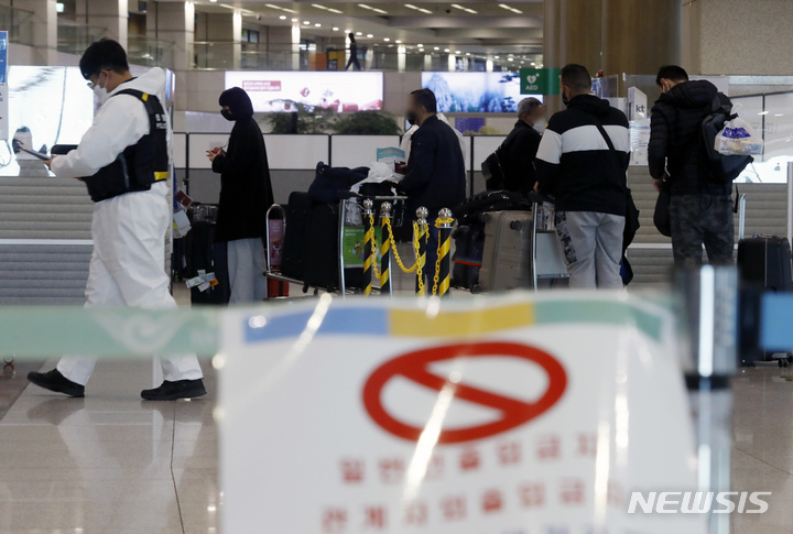 [인천공항=뉴시스] 고승민 기자 = 정부가 16일까지 2주간 해외서 국내로 들어오는 모든 내외국인에 대해 코로나19 백신 접종 여부와 상관없이 10일간 격리토록한 3일 인천국제공항 제1터미널 입국장에서 외국인들이 전용 버스를 기다리고 있다. 내국인 및 장기체류 외국인은 자가격리, 단기체류 외국인은 정부가 마련한 임시생활시설에서 격리한다. 2021.12.03. [email protected]