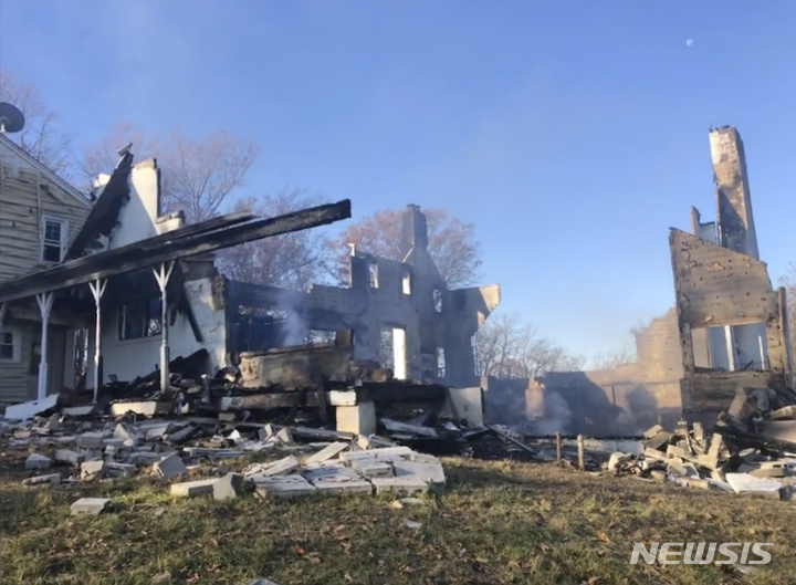 [풀스빌=AP/뉴시스] 지난달 23일(현지시간) 미 메릴랜드주 몽고메리 카운티 풀스빌에서 한 여성이 자신의 집에 들끓는 뱀을 쫓아내기 위해 불을 피웠다가 화재가 발생해 타버린 집 잔해만 남아 있다. 소방 당국은 이 여성이 지하에서 연기로 뱀들을 내쫓기 위해 석탄에 불을 붙였으나 주변 가연성 물질에 불이 붙어 집으로 번지면서 약 1억 원 상당의 피해를 입었다고 밝혔다. 다행히 다친 사람은 없지만 뱀들이 집에서 나갔는지는 밝혀지지 않았다. 2021.12.04.