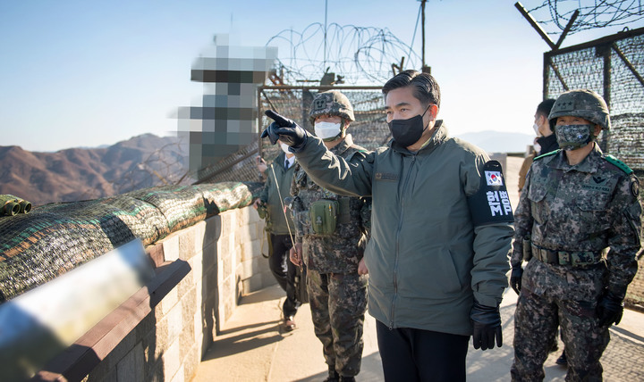 [서울=뉴시스]박미소 기자 = 서욱 국방부장관이 4일 오전, 중부전선 육군부대 GOP부대를 방문해 동계작전 대비태세를 점검 하고 있다. (사진=국방부 제공) 2021.12.04. [email protected] *재판매 및 DB 금지