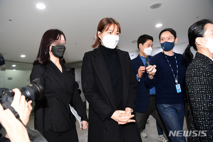 [서울=뉴시스] 조수정 기자 = 여자프로배구 IBK기업은행 세터 조송화 선수가 10일 오전 서울 마포구 상암동 한국배구연맹에서 열린 무단 이탈 관련 상벌위원회에 출석하고 있다. (공동취재사진) 2021.12.10. [email protected]
