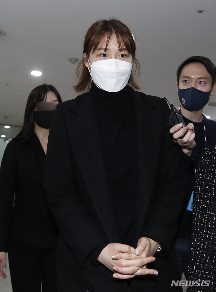 [서울=뉴시스] 조수정 기자 = 여자프로배구 IBK기업은행 세터 조송화 선수가 10일 오전 서울 마포구 상암동 한국배구연맹에서 열린 무단 이탈 관련 상벌위원회에 출석하고 있다. (공동취재사진) 2021.12.10. [email protected]