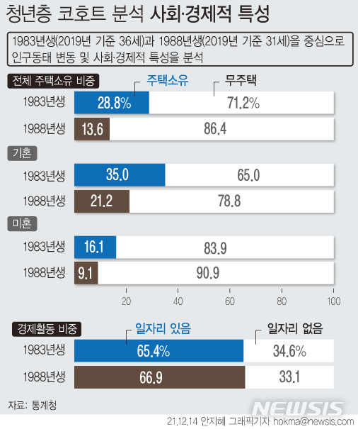 [그래픽] 83·88년생 3명 중 2명만 일한다…주택 소유는 10~20%대