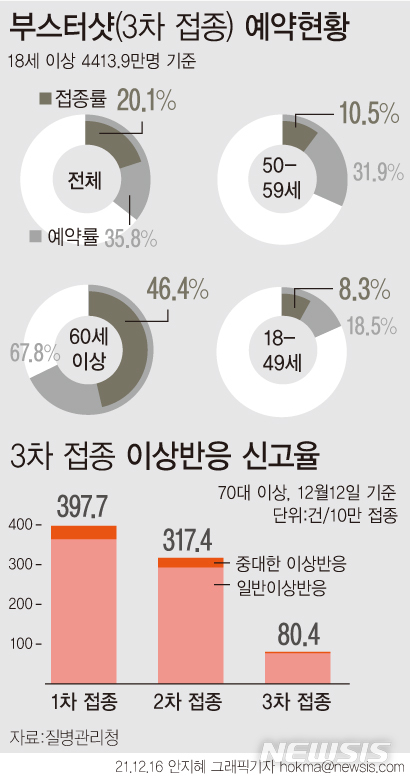 [그래픽] 백신 3차 접종 예약률 및 이상반응 신고율