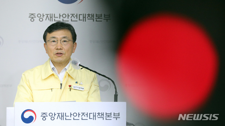 [세종=뉴시스] 강종민 기자 = 권덕철 중앙재난안전대책본부 1차장(보건복지부 장관)이 16일 오전 정부세종청사에서 전국 사적모임 인원 제한을 4인으로 축소하고 식당·카페 영업시간을 오후 9시까지로 제한하는 내용의 거리두기 강화안 등을 발표하고 있다. 2021.12.16. [email protected]