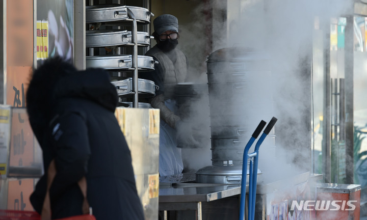 [대구=뉴시스] 이무열 기자 = 기온이 뚝 떨어지며 추운 날씨를 보인 19일 오후 대구 달성군 가창면 찐빵가게에서 찐빵을 찌고 있다. 2021.12.19. [email protected]