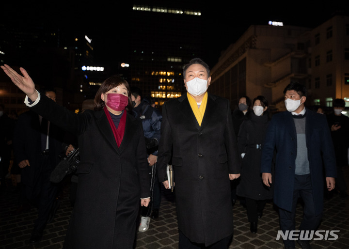 [서울=뉴시스] 정병혁 기자 = 윤석열 국민의힘 대선후보가 24일 오후 서울 중구 명동성당에서 열린 성탄절 미사에 참석하고 있다. (공동취재사진) 2021.12.25. [email protected]