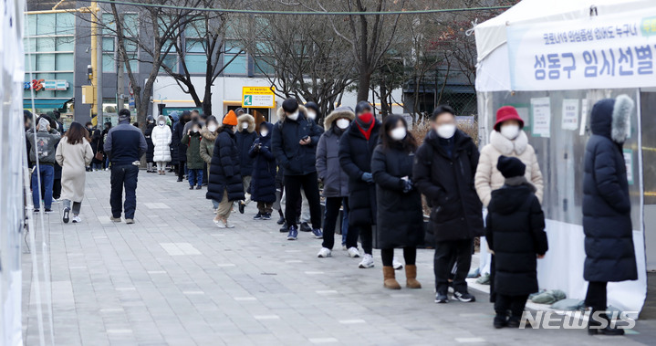 [서울=뉴시스] 홍효식 기자 = 0시 기준 코로나19 신규 확진자가 4,207명으로 집계된 27일 오전 서울 성동구 성수구두테마공원 임시선별검사소에서 시민들이 검사를 받기 위해 기다리고 있다. 2021.12.27. [email protected]