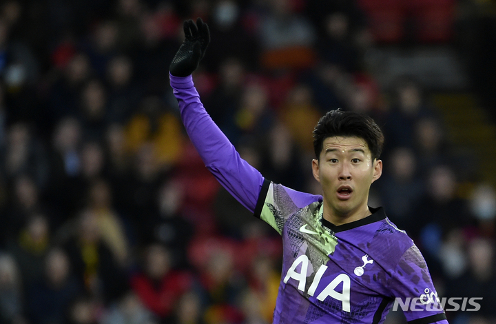 [왓퍼드=AP/뉴시스] 토트넘 홋스퍼의 손흥민이 1일(현지시간) 영국 왓퍼드의 비커리지 로드에서 열린 2021-22 잉글랜드 프로축구 프리미어리그(EPL) 21라운드 왓퍼드와의 경기에 선발 출전해 경기하고 있다. 손흥민은 후반 추가시간 프리킥으로 다빈손 산체스의 헤딩 결승골을 도와 팀의 1-0 승리에 이바지하며 최고 평점을 받았다. 2022.01.02.