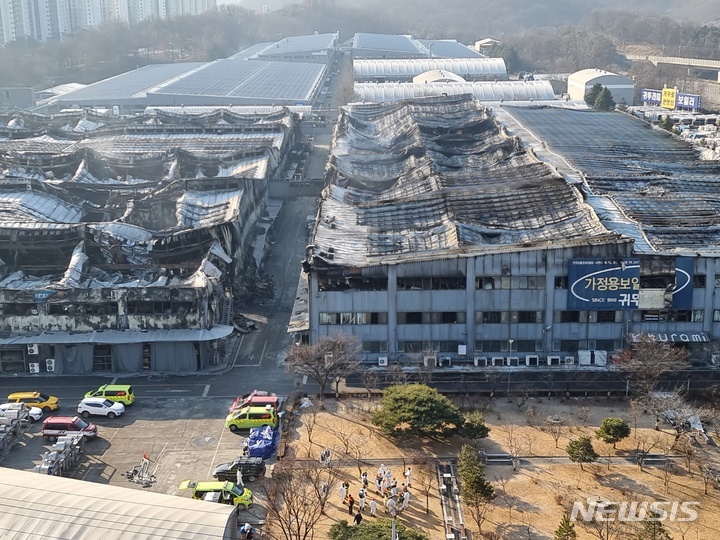 [아산=뉴시스] 이종익 기자 = 경찰과 소방, 국립과학수사연구원 등이 3일 오전부터 지난1일 불이 난 충남 아산의 귀뚜라미보일러 아산공장에서 화재 원인을 밝히기 위한 1차 합동 감식을 진행하고 있다. 2022.01.03. [email protected]