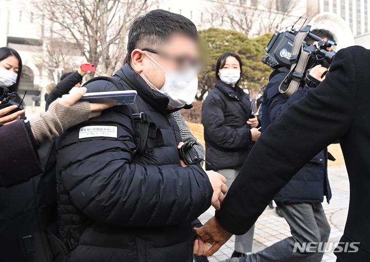 [서울=뉴시스] 조성우 기자 = 대장동 개발 특혜·비리 의혹 사건 첫 공판이 열린 10일 오후 서울 서초구 서울중앙지방법원에서 정영학 회계사가 공판이 끝난 뒤 청사를 떠나고 있다. (공동취재사진) 2022.01.10. [email protected]